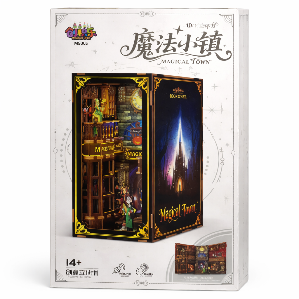 Este Book nook es una pieza decorativa única tipo DIY que recrea una escena mágica inspirada en mundos de fantasía. Con iluminación LED y detalles increíbles, es perfecto para transformar cualquier librero en un ambiente especial.